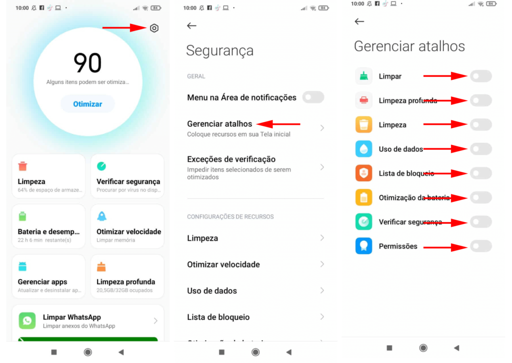 O gerenciador de atalhos do aparelho Xiaomi também pode ser um vilão para que o app “segurança” detecte qualquer aplicativo de captura de dados instalado no aparelho, você pode desabilitar os atalhos da tela inicial do Xiaomi dessa maneira: