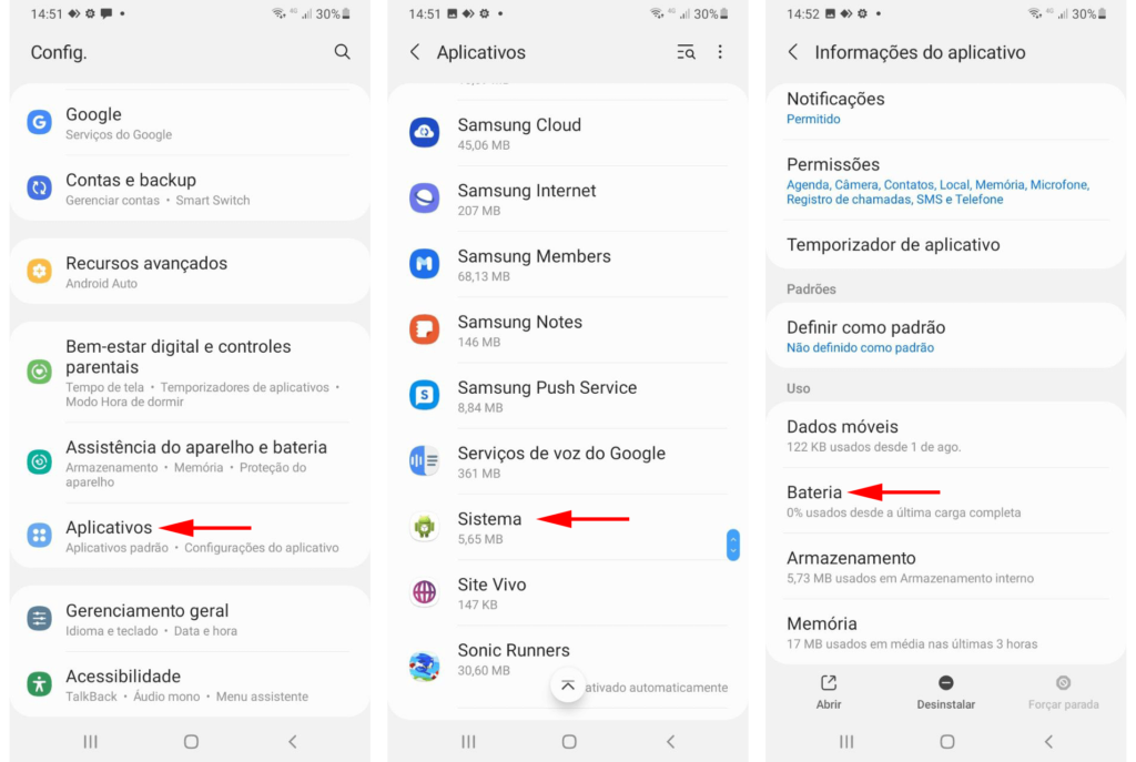 Para desabilitar a otimização de bateria em aparelhos Samsung com Android 12 siga esses passos: