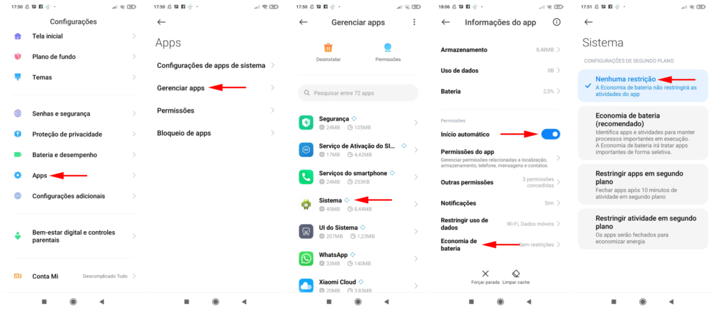 Para não restringir a economia de bateria para o App Web Detetive em aparelhos Xiaomi siga esses passos: