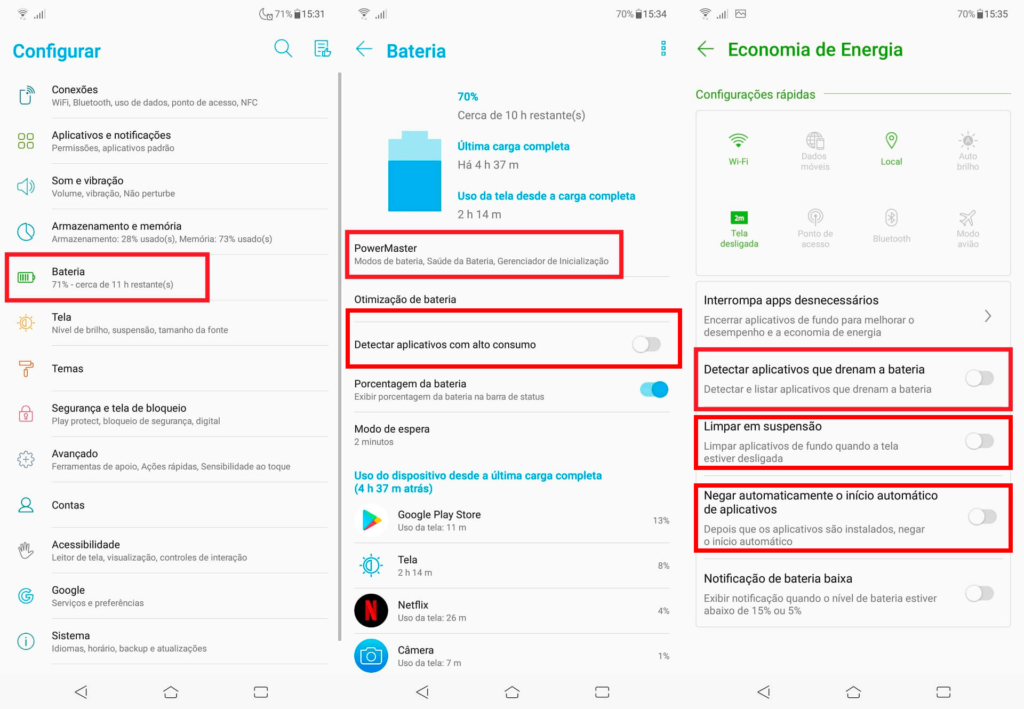 - Desabilite “detectar aplicativos que drenam a bateria”;